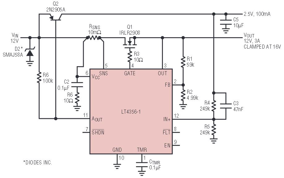 Figure 6. The LT4356’s internal spare amplifier can drive an external PNP to provide another supply rail.