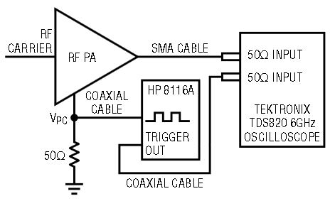 To determine which LTC RF power controller fits a particular application, the designer must first understand the RF power amplifier turn-on characteristics. Figure 4 shows a recommended test setup.