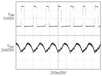 Figure 3. Output ripple of the 3.3V-to-(–8V) inverter at 30mA is only 2.2mVP–P.