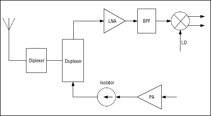 Where, K is Boltzman's constant, To is standard noise temperature and BW is1.23MHz channel bandwidth for narrow band CDMA. This NF requirement is for the entire receiver. Subtracting the loss of 0.5dB in the diplex circuit and 3.5dB in the duplex circuit, the NF requirement for the rest of the receiver is 3.8dB. From the system simulation of the receiver, NF of a LNA for cellular band should be less 2dB, and 2.3dB in PCS band.