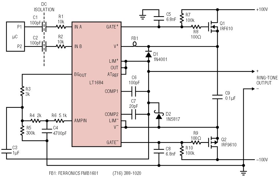 Figure 2. Typical LT1684 digital-PWM-to-ringing-telephone converter application.