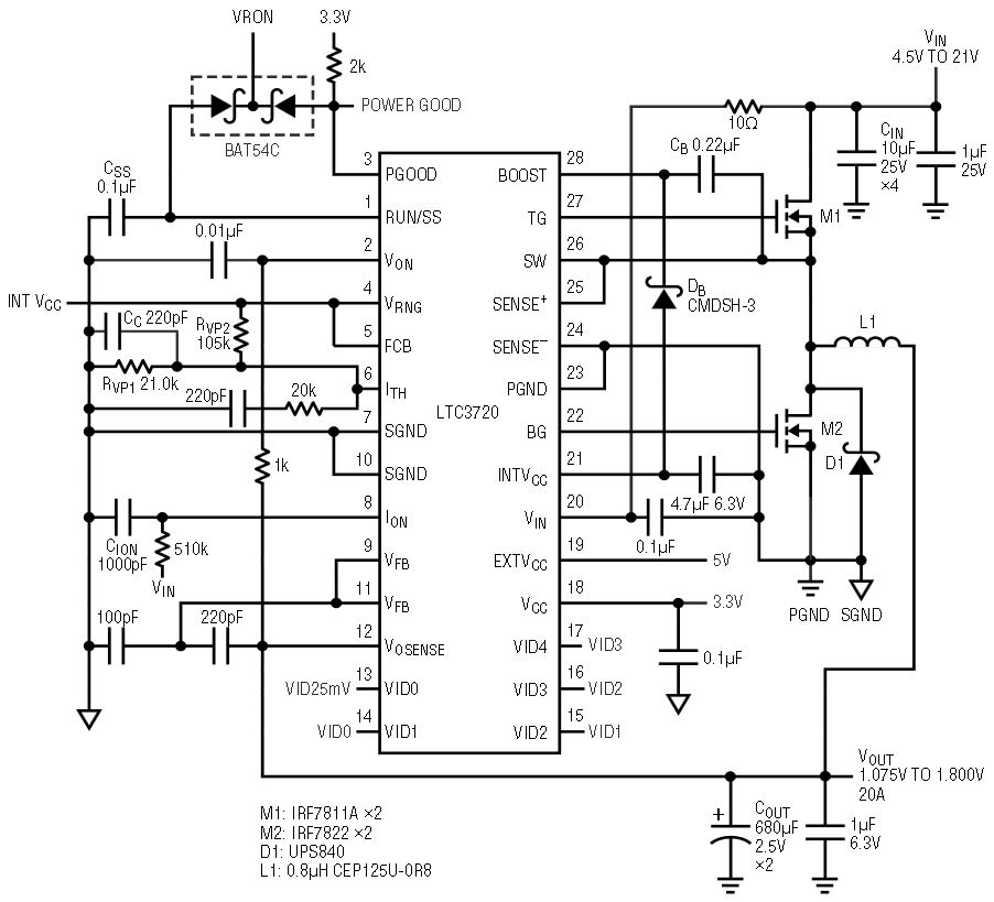 Figure 1. A 20A VRM8.5 design using the LTC3720.