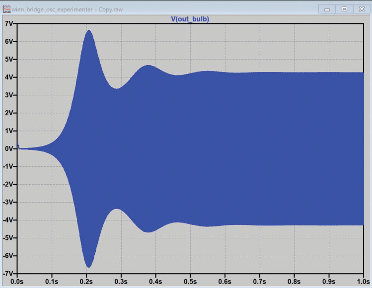 Open the wien_bridge_osc_experimenter.asc simulation, shown in Figure 6. Note that this simulation file is in the PCB design files folder.