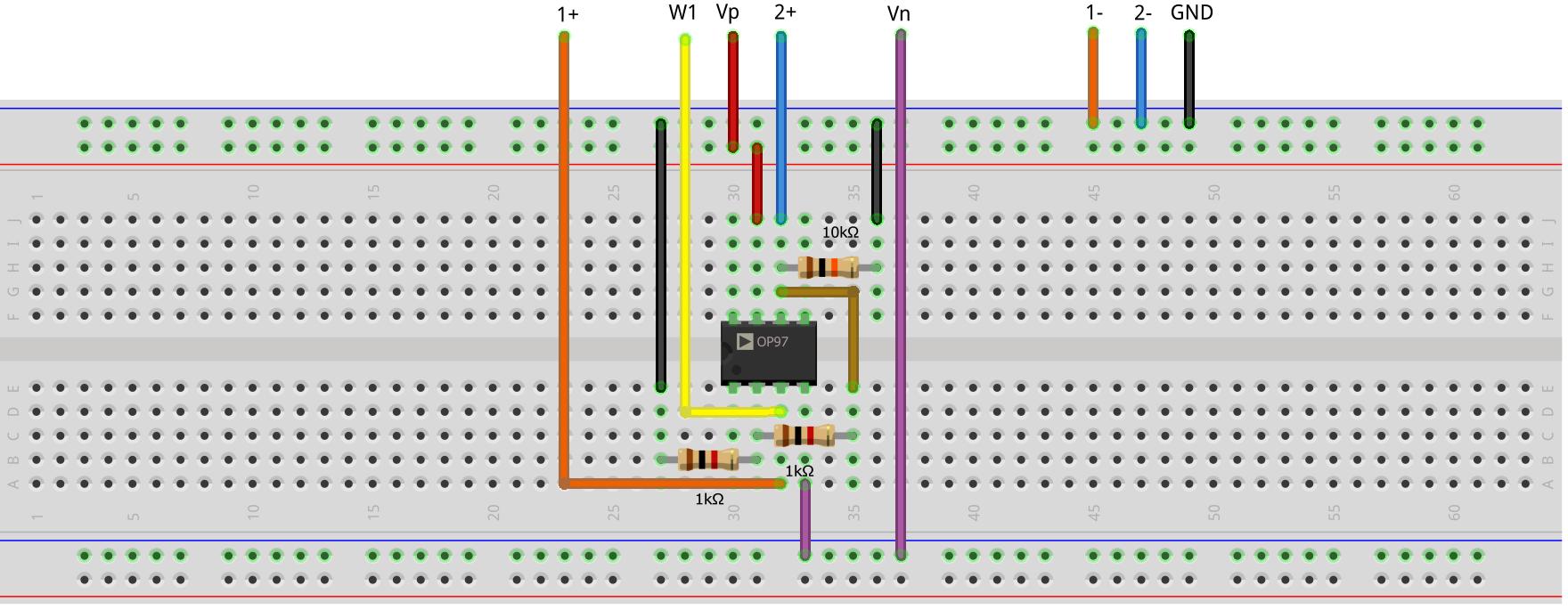 - Two OP97s (low slew rate amplifiers supplied with the recent versions of the ADALP2000 analog parts kit)