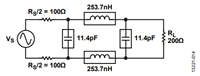 - Change the single-ended filter into a differential filter. Keep the source and load impedance the same, shunt all capacitors, and cut all serial inductors in half and put them in the other differential path (see Figure 19).