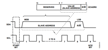 Figure 15 shows how the master sends the 7-bit address (Bits[7:1]) and the directional (read or write) bit (Bit 0) to the slave.