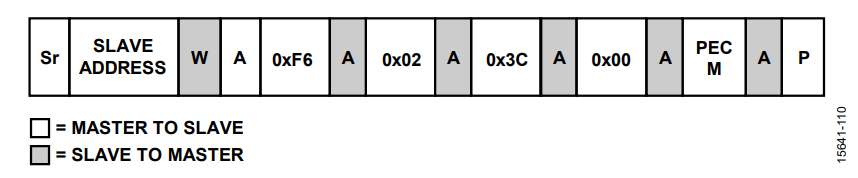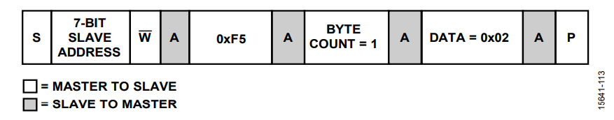 After writing the configuration data, cyclic redundancy check (CRC) calculations of all the memory sections can be triggered by writing to the MEMORY_RECALCULATE_CRC command (Register 0xF9), as shown in Figure 14.