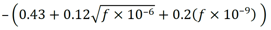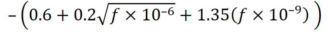 800–3000 | – 16.9+ 8(𝑓 × 10–9– 1)/1.5 | |
