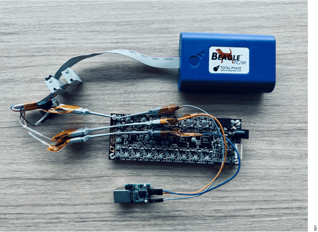 For optimal learning, start with a DC1613A, a DC1962C2 , a Devantech adapter3 , and a Total Phase® Beagle™ 4 (I2C sniffer). These devices present the programming, debugging, and learning of controllers (LTC388X/µModules) and managers (LTC297X).