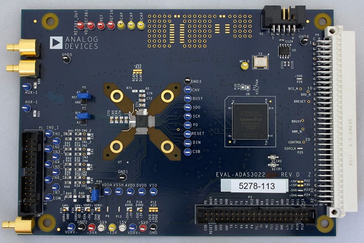 The EVAL-ADAS3022EDZ is a customer evaluation board intended to ease standalone testing of performance and functionality for the 16-bit ADAS3022 complete DAS.