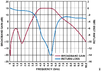 For wider bandwidth of operation, the HMC8411 can be used as an alternative part for the RF LNA. The HMC8411 is low noise wideband amplifier that operates from 0.01 GHz to 10 GHz. It provides a typical gain of 15.5 dB, a 1.7 dB typical noise figure, and a typical output third-order intercept (OIP3) of 34 dBm, requiring only 55 mA from a 5 V supply voltage. The HMC8411 also features inputs and outputs that are internally matched to 50 Ω, making the device ideal for surface-mounted technology (SMT)-based, high capacity microwave radio applications.