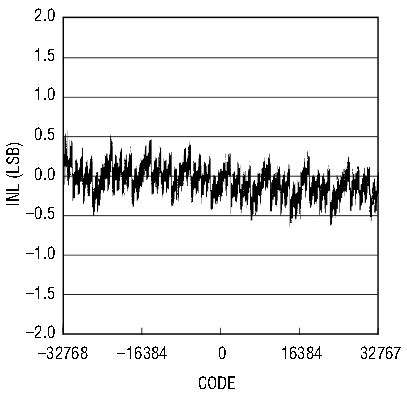 Figure 2. The LTC1604 is very accurate, as shown in the INL error plot. This accuracy is achieved without autocalibration and its associated overhead. Accuracy relies on capacitor matching, which is very stable over temperature and time.