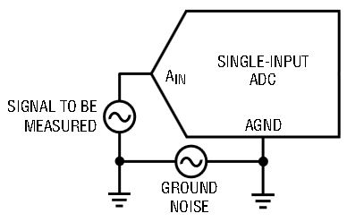 Figure 7a. Single-input ADC measuring a signal riding on common mode noise.