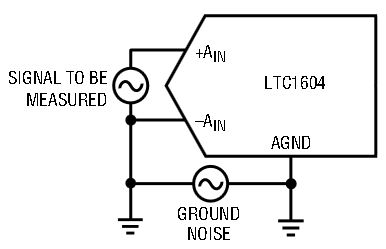 Figure 7b. Differential-input ADC measuring a signal riding on common mode noise.