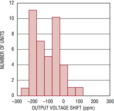 Figure 3. Typical distribution of output voltage shift after soldering onto PC board.