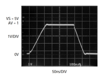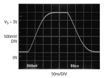 Figure 13 shows the time domain response of the amplifier providing a 200V output swing into a 100pF load.