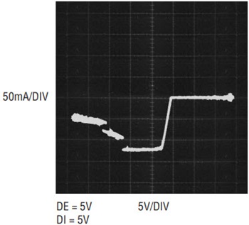 The LTC2859/LTC2861 drivers can deliver RS485/RS422 signals up to 20Mbps. Figure 7 shows waveforms of the part operating at the maximum data rate. The LTC2859/LTC2861 also feature a reduced-slew rate mode (SLO mode), which is entered by setting the SLO pin to a logic low level.