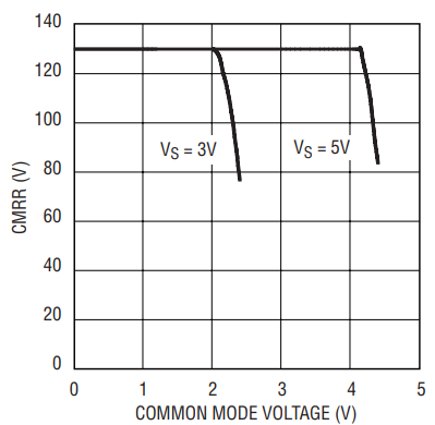 Figure 1. LTC2050 DC common mode rejection ratio vs common mode input voltage.