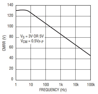 Figure 2. LTC2050 common mode rejection ratio vs frequency.