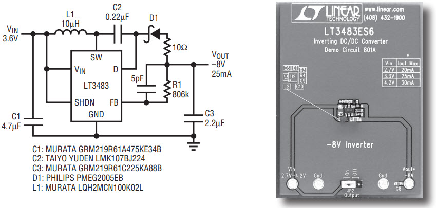 Low power negative bias supplies are commonly used in many of today’s handheld products for imaging and display modules. As is the case with all portable products, small size and efficient operation are top requirements. The LT3483 steps in to fill this need with a minimum footprint, low profile negative supply that yields long battery life.