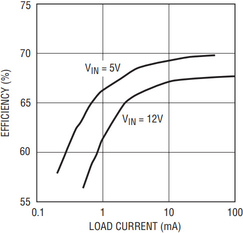 Figure 6. Efficiency of −5V step-up/step-down converter.