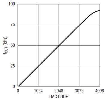 Figure 9. Input code vs output frequency for Figure 8’s circuit.