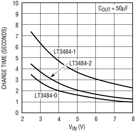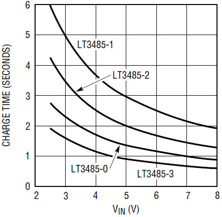 Once the decision is made on the integrated IGBT driver, choosing a current option is a matter of balancing the inherent trade-off between input current and charge time. For a given photoflash capacitor size, the device which results in the highest input current offers the fastest charge time. The limit on how much current the photoflash charger can draw is usually set by the battery technology used, and how much load they can handle. The LT3485-3 offers the fastest charge times of the chargers discussed here.