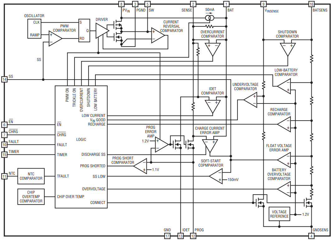 Figure 2. Simplified block diagram of the LTC4001 Li-Ion battery charger.
