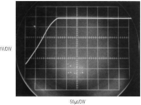 The A-to-D’s conversion rate combines with the loop’s sampled data characteristic and slow amplifiers to dictate relatively slow DAC response. Figure 5’s slew response requires about 150 microseconds.