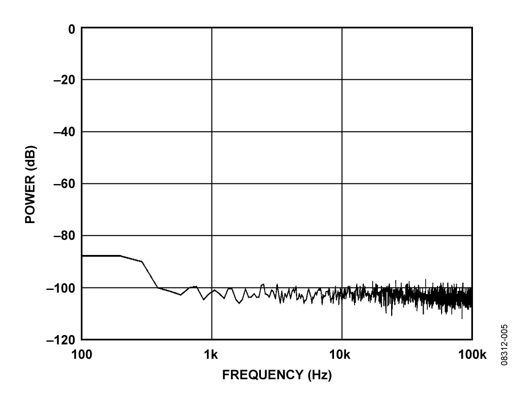 スペクトル・アナライザを使って100Hz~100kHzの範囲を掃引したDAC出力を図5に示します。目立った相互変調歪み成分は観測されていないので、AD8628のようなオートゼロ・アンプをリファレンス・バッファとして使用するのが最適なことが示されています。