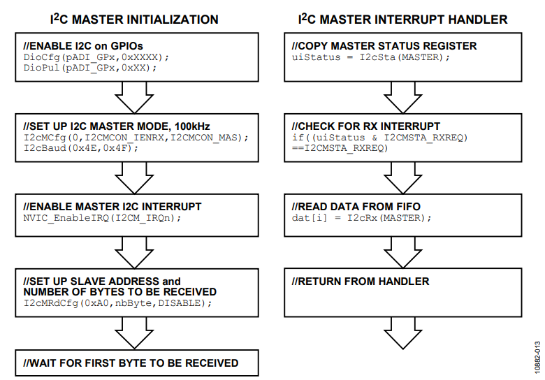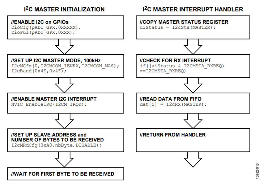 A flowchart of the master receiving bytes from the slave is shown in Figure 13.