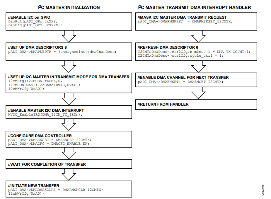 Figure 16 shows a flowchart of I2C master transmit DMA transfer.