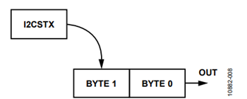 • If Byte 0 is empty, the byte in Byte 1 gets pushed to Byte 0 automatically. This is transparent to the user. I2CFSTA register indicates when one byte is present in the FIFO.
