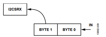 • If Byte 1 is already full, Byte 0 stays until I2CSRX is read (equivalent to reading Byte 1).