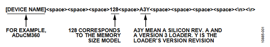 When it receives the backspace, the loader immediately sends the following 24-byte ID data packet: