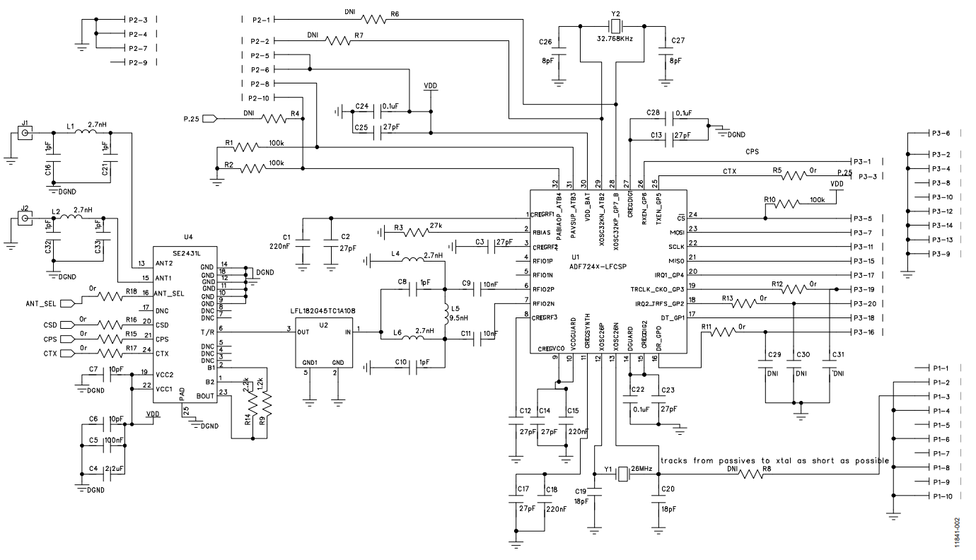 Figure 2. ADF7242 SE2431L Reference Evaluation Board Schematic.