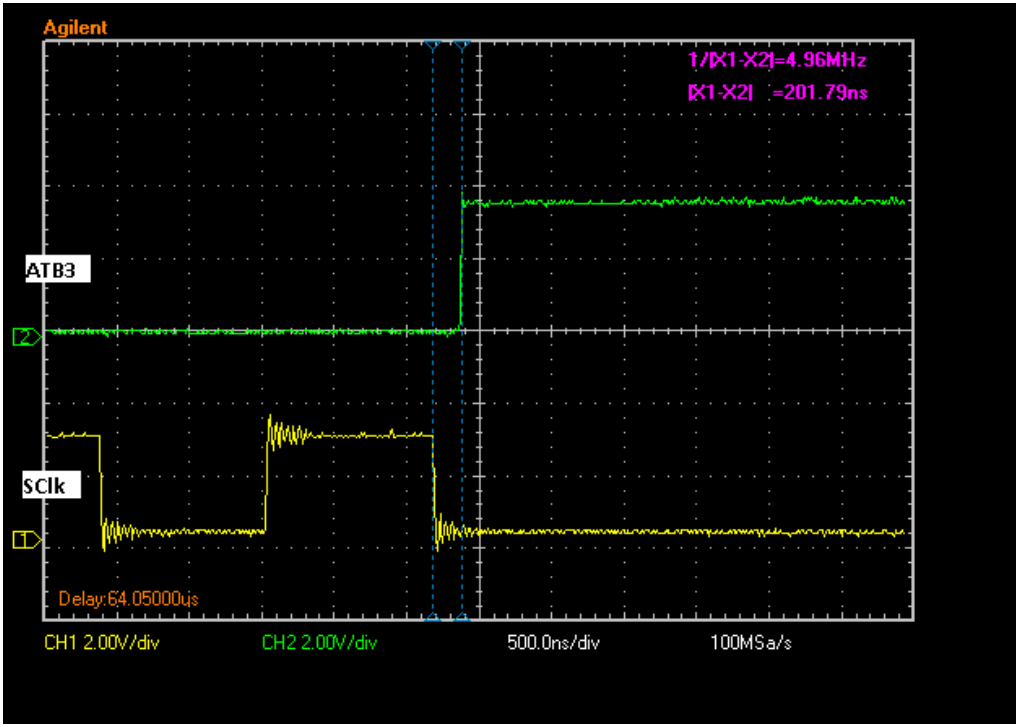 Figure 3. Time from Register 0x31E Register Write (Last SCLK Edge) to ATB3 High (Enabling FEM).