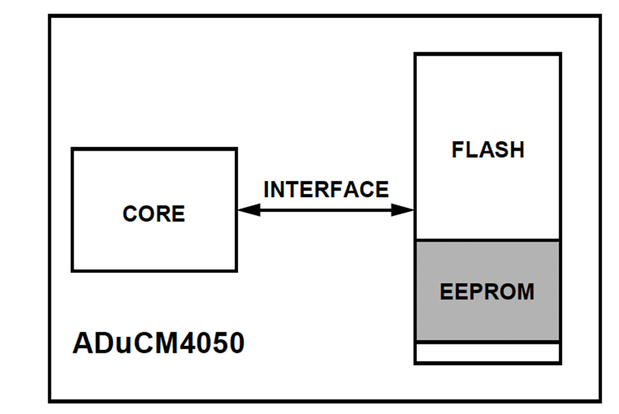 このアプリケーション・ノートでは、図1 に示すように、ADuCM4050 デバイスと内蔵フラッシュ・メモリを使ってEEPROM をエミュレートするソフトウェアについて説明します。