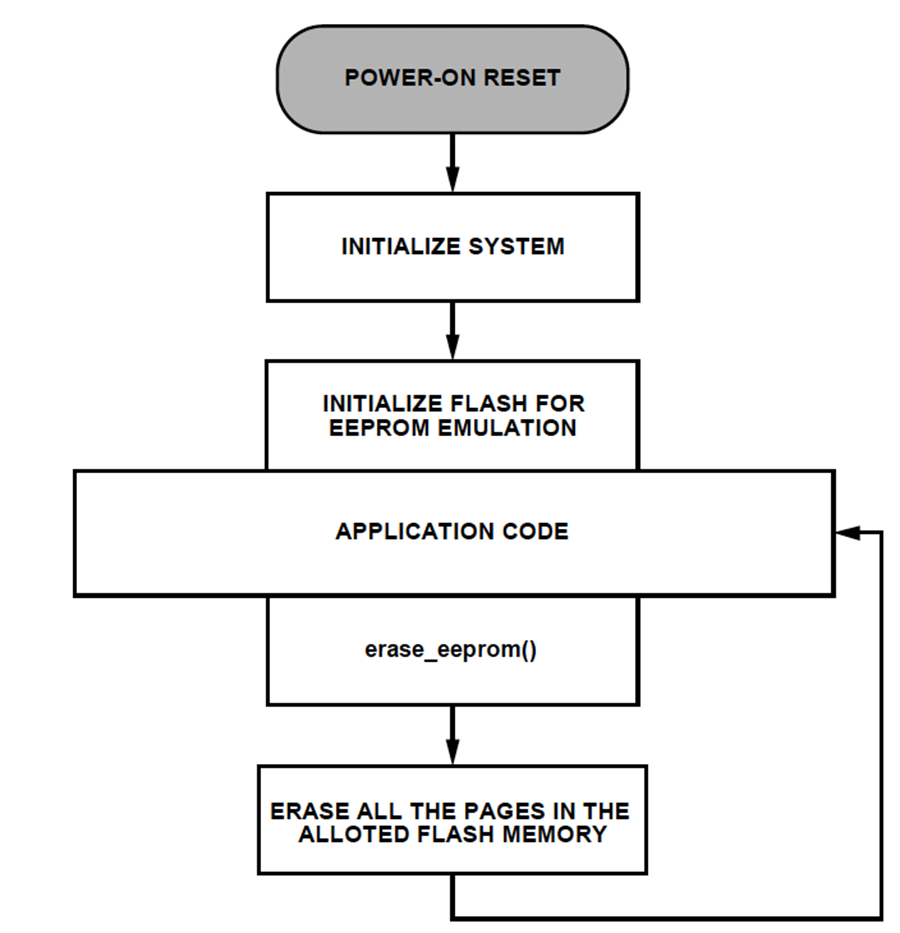 EEPROMへの書き込み中にページが変更されると、erase_flash(page)関数を呼び出すことによって、前ページ上でページ消去コマンドがアサートされます。ページ消去の前には、EEPROMへの書込みのセクションで説明したように、データの移動が行われます。
