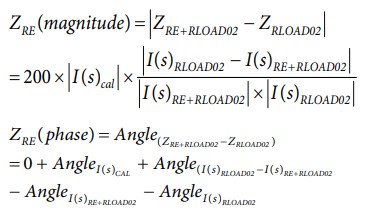 If ZCAL(magnitude) = 200 Ω and ZCAL(phase) = 0, it is possible to obtain the following equations: