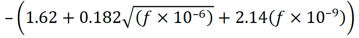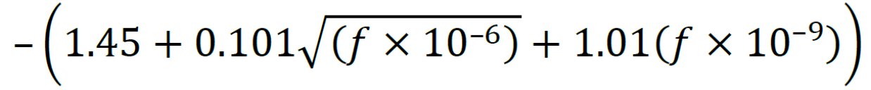 800–3000 | – 16.9+ 8(𝑓 × 10–9– 1)/1.5 | |