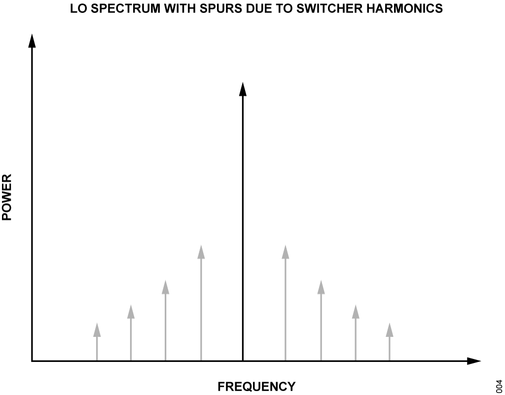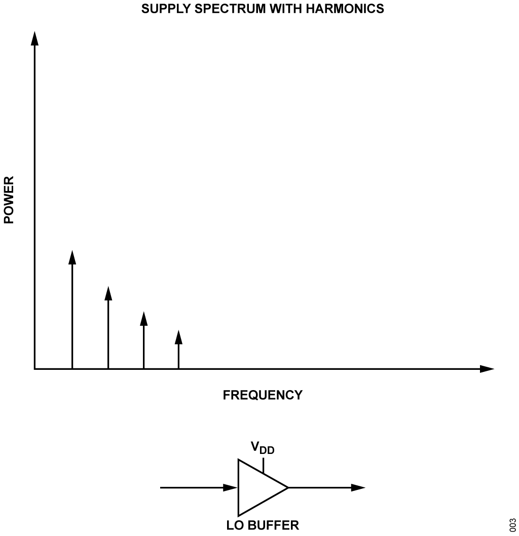 - Spurious Signals: Signals on the supplies (switching frequency harmonics) can modulate the phase of the LO or clock, creating spurs or broad-spectrum noise on transmitter and receiver signals.