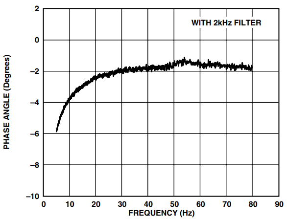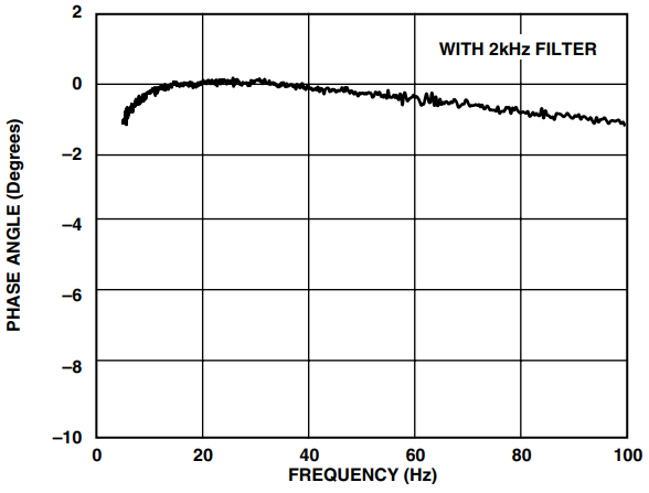 To illustrate this point, Figure 1 shows the phase response from 5 Hz to 80 Hz of an ADXRS150 gyro set to 2 kHz bandwidth. Figure 2 shows the phase response from 5 Hz to 100 Hz of an ADXL203 set to 2 kHz bandwidth. In both cases, one can see that the phase response is essentially flat.