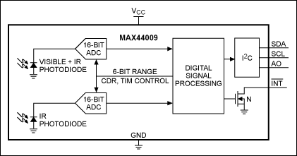 図4. MAX44009のファンクションブロックダイアグラム