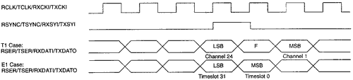 - RSYNC is programmed to output a frame sync; TSYNC is programmed to input a frame sync.