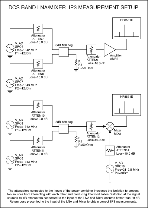 DCSバンドのLNAとダウンコンバータのIIP3を測定するためのセットアップ