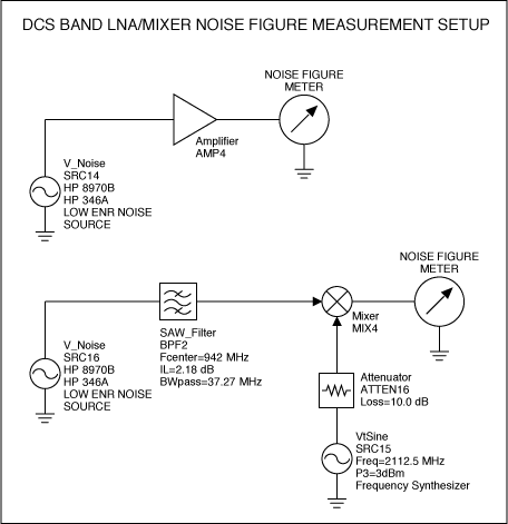 DCSバンドのLNAとダウンコンバータのノイズ指数を測定するためのセットアップ