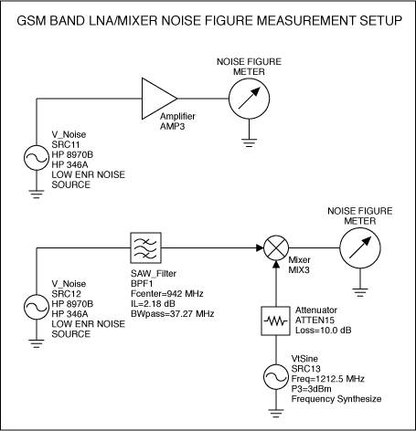 GSMバンドのLNAとダウンコンバータのノイズ指数を測定するためのセットアップ