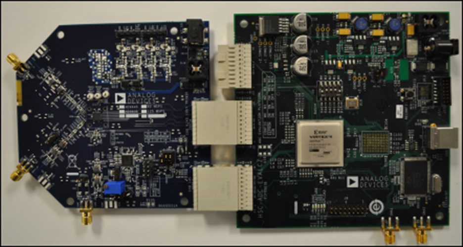The AD9635-125EBZ is an evaluation board for the AD9635, dual 12-bit ADC. This reference design provides all of the support circuitry required to operate the devices in their various modes and configurations. It is designed to interface directly with the HSC-ADC-EVALC data capture card, allowing users to download captured data for analysis. The Visual Analog software package, which is used to interface with the device's hardware, allows users to download captured data for analysis with a user-friendly graphical interface. The SPI Controller software package is also compatible with this hardware, and allows the user to access the SPI programmable features of the AD9635.The AD9635 data sheet provides additional information related to device configuration and performance, and should be consulted when using these tools. All documents and Visual Analog and SPI Controller are available at the High Speed ADC Evaluation Boards page. For additional information or questions, please email highspeed.converters@analog.com.