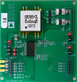 The EVAL-ADuM4471EBZ board can be used for different applications of the ADuM447x iCoupler isolated switching regulators. With the ability to be configured as a circuit with either single- (default) or double-supply output, the board supports a variety of input/output configurations and multiple transformer options. It is equipped with an ADuM4471 switching regulator (ADuM4471ARIZ) for voltage isolation, but can also be used with ADuM4470ARIZ, ADuM4472ARIZ, ADuM4473ARIZ, or ADuM4474ARIZ. The regulator features integrated feedback and a switching frequency that can be set from 200 kHz to 1000 kHz.The user guide provides all the necessary details to set up and use the EVAL-ADuM4471EBZ board. Although the EVAL-ADuM4471EBZ comes with the ADuM4471 switching regulator on board, the printed circuit board (PCB) is designed for compatibility with the entire ADuM447x family. Additional information about the supported iCoupler devices is available in the ADuM4470/ADuM4471/ADuM4472/ADuM4473/ADuM4474 data sheet, which should be consulted in conjunction with this user guide when using the EVAL-ADuM4471EBZ board.